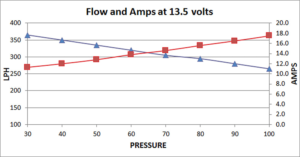Deatschwerks Fuel Pump - 350 L/h E85 Specification Flow at 3 BAR : 350 litres / hour Flow at 5 BAR : 300 litres / hour Maximum pressure : 7 BAR Input : Dash 8 Output : Dash 8 Overall pump length : 155 mm Outer diameter : 60 mm 3 year warranty Compatible with E85 Deatschwerks 350 L/h This fuel pump is manufactured by Deatschwerks and can provide the perfect solution to your fuelling needs. Extremely reliable and compact it is modelled on the dimensions and fittings of the famous 044 from Bosch with new innovative pump technology. It's nominal output is 350 litres per hour at 3 BAR sufficient for beyond 700 HP. It's also possible to install 2 pumps in parallel to achieve even higher rates of fuel flow. DriftShop provides only genuine Deatschwerks parts directly from the manufacturer with a full 3 year warranty. Flow / Amp Diagram