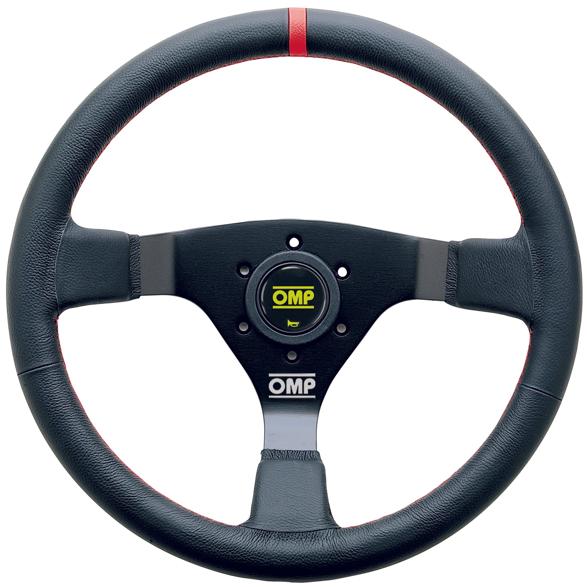 OMP WRC Steering Wheel (70 mm Dish), Black Leather, Black Spokes, Red Stitching